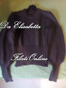 Un modello di Marciano Guess ,io l’ho fatto in lana di agnello marrone coste 1/1 e maglia inglese il polsino stretto fatto da parte e attaccato dopo. La kefia non ha una taglia ho cominciato con 6 aghi sulla destra della macchina ho aumentato 1 maglia a sinistra ogni 2 giri fino ad arrivare a 160 maglie fare 10 giri e poi diminuire sempre sul lato sinistro 1 ogni 2 giri fino ad avere di nuovo 6 maglie riguardando il filato 2/28 messo a 3 con macchina finezza 5 tensione 7. Peserà circa 150gr